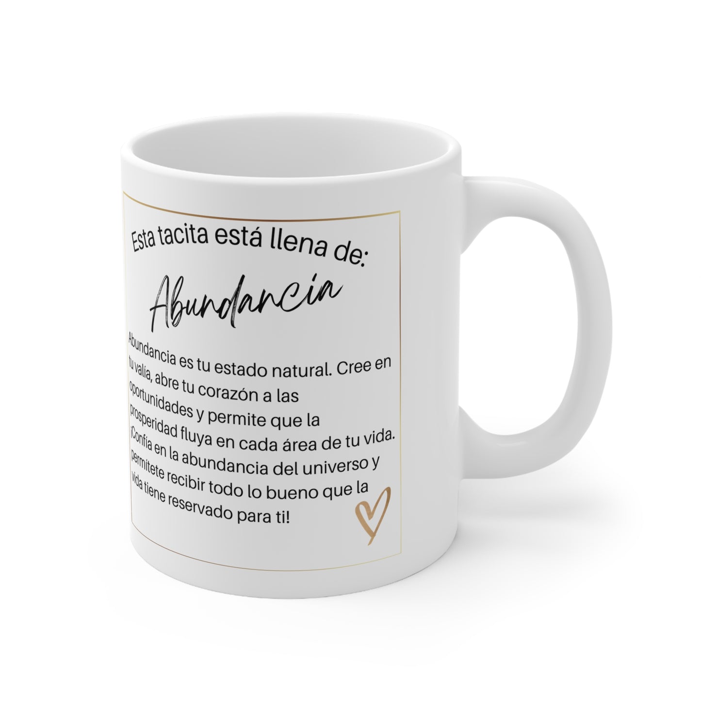 Recuerda que la vida está llena de oportunidades y que mereces lo mejor. Cada sorbo es un recordatorio de la riqueza que puedes atraer a tu vida, ya sea en amor, éxito o felicidad. Deja que esta taza sea tu amuleto diario, infundiendo cada momento con la mentalidad de la abundancia. ¡Vive una vida plena y próspera!"